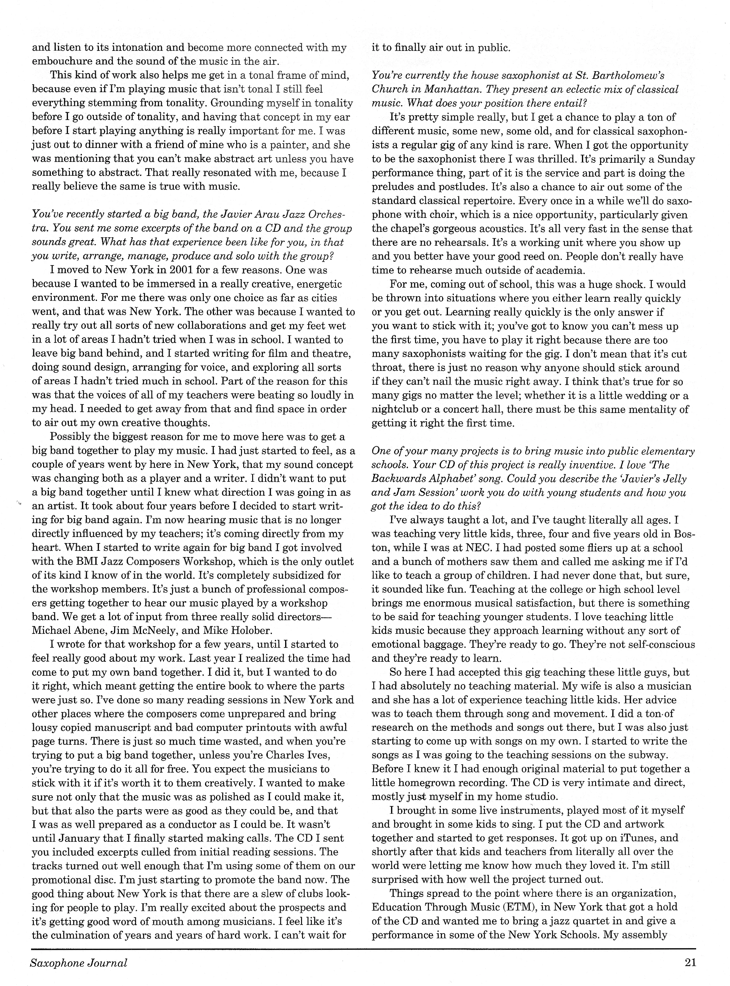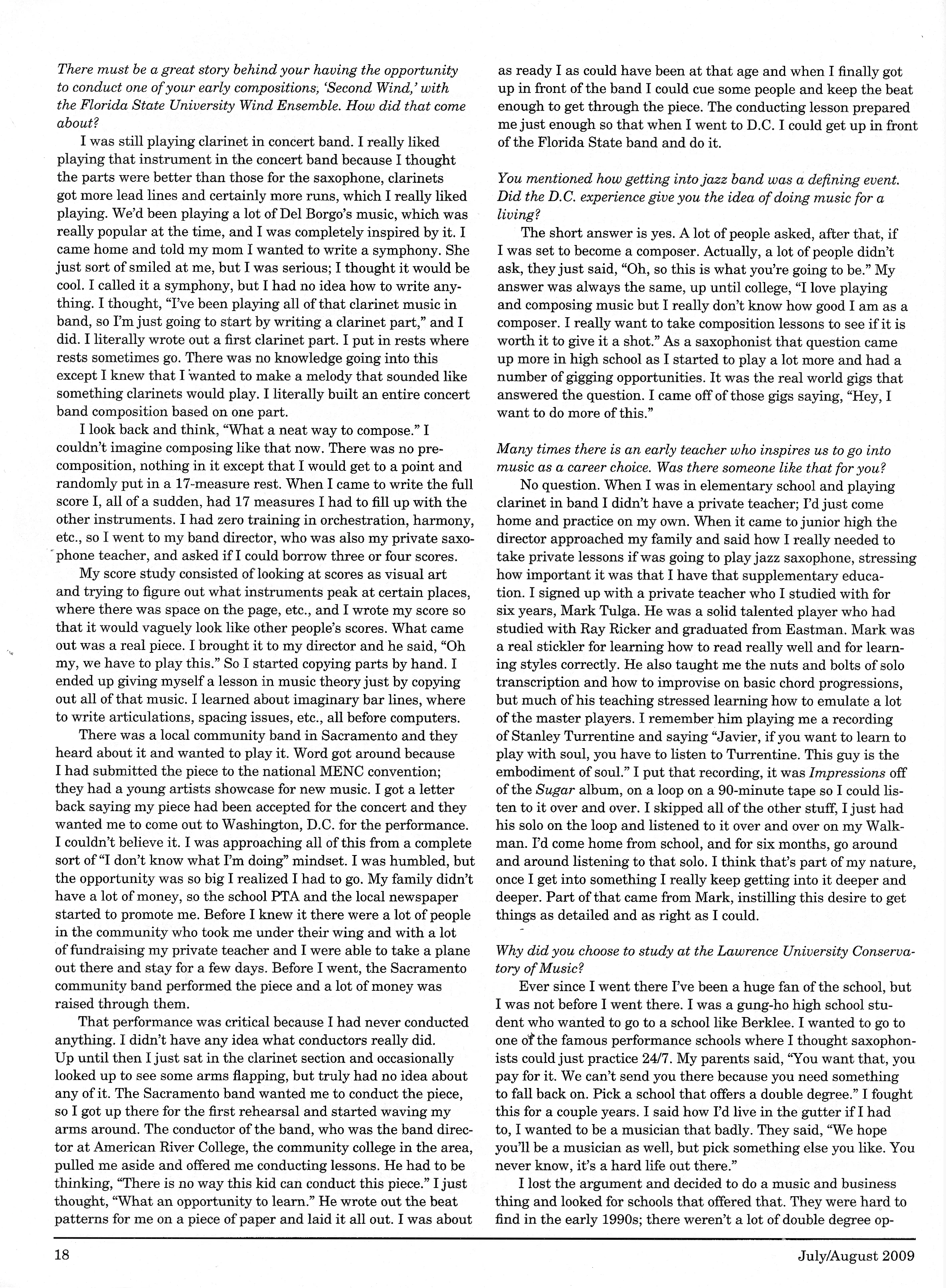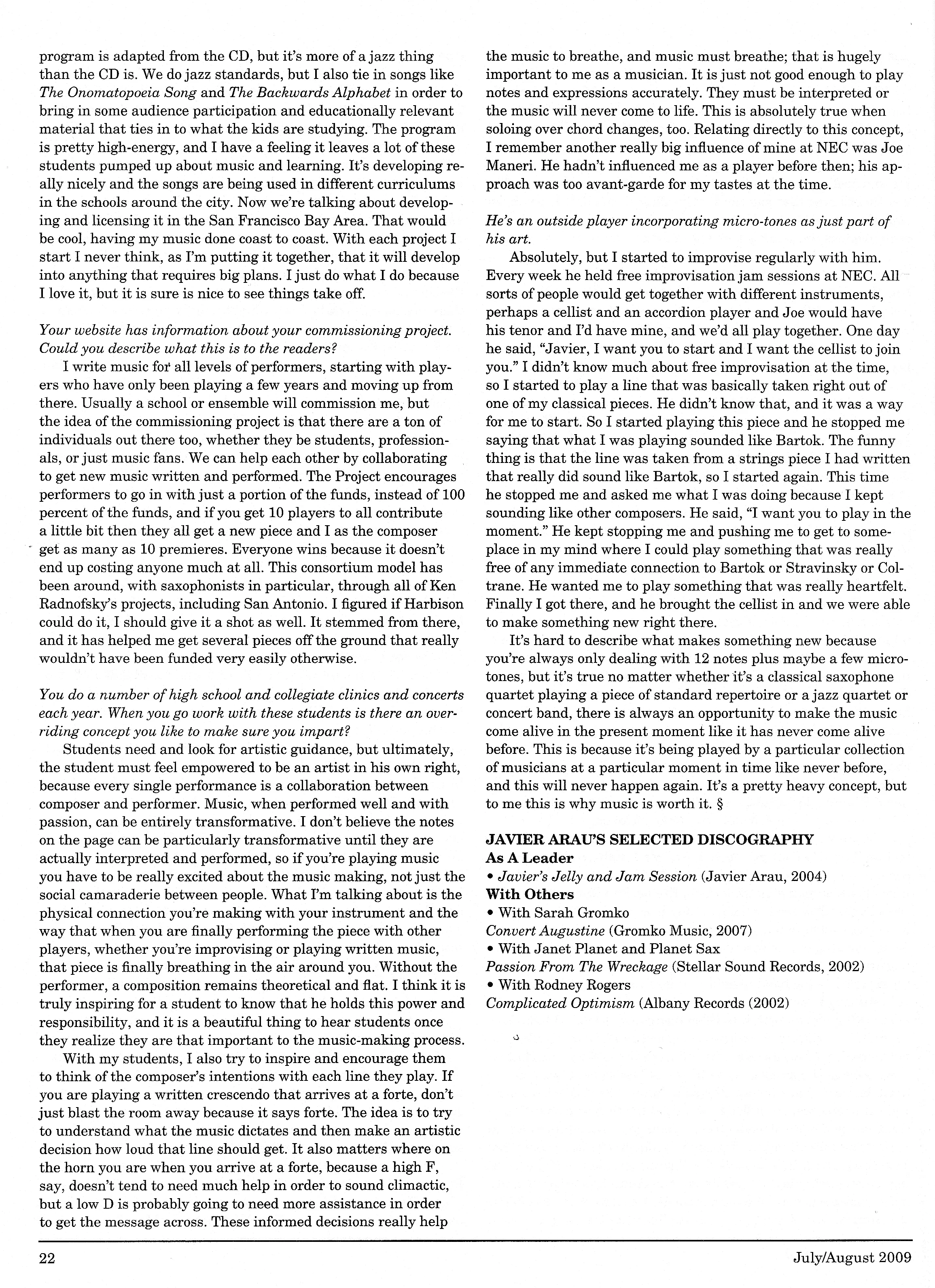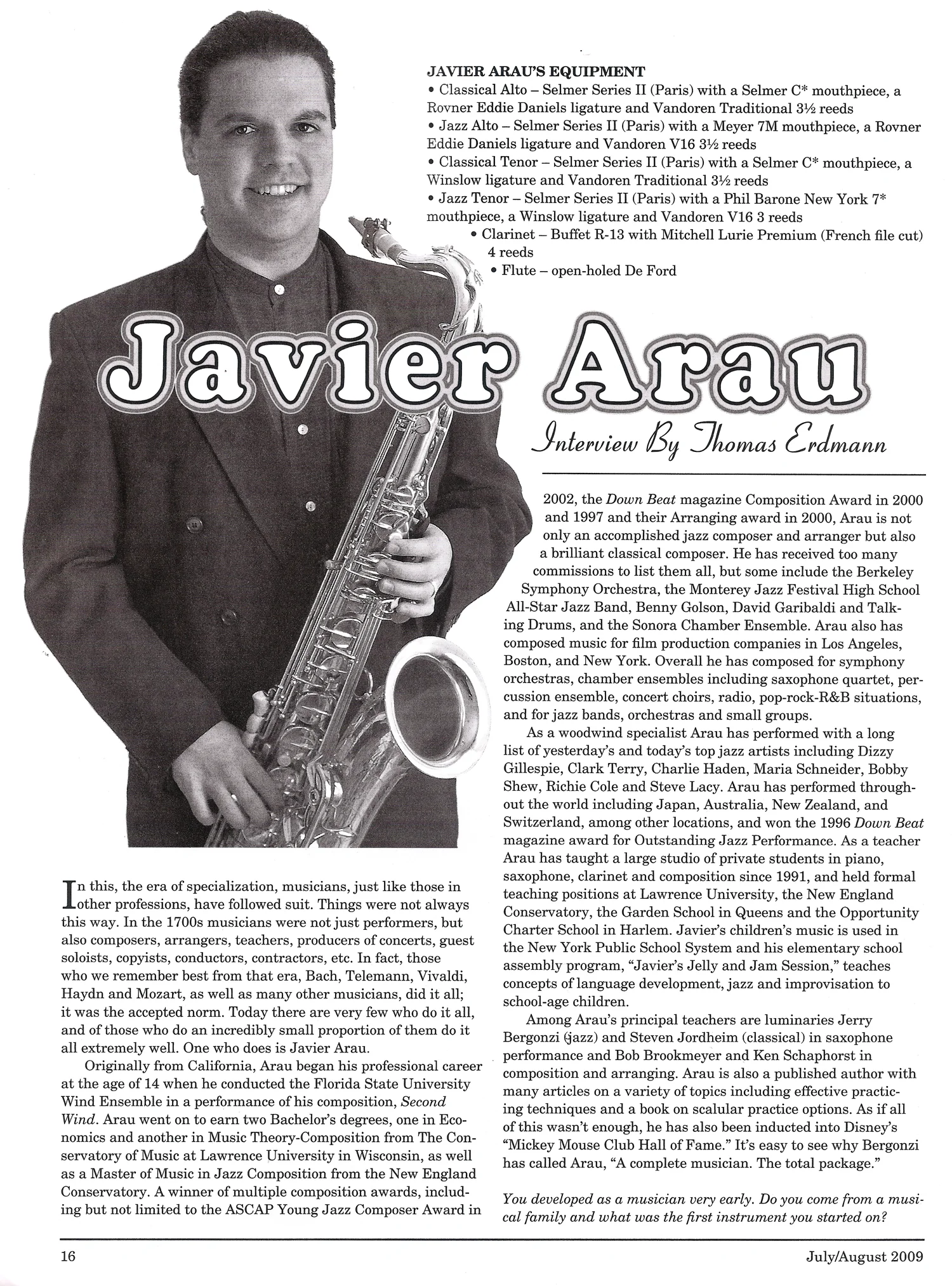 Saxophone Journal Cover Artist Feature Interview (July/August 2009)