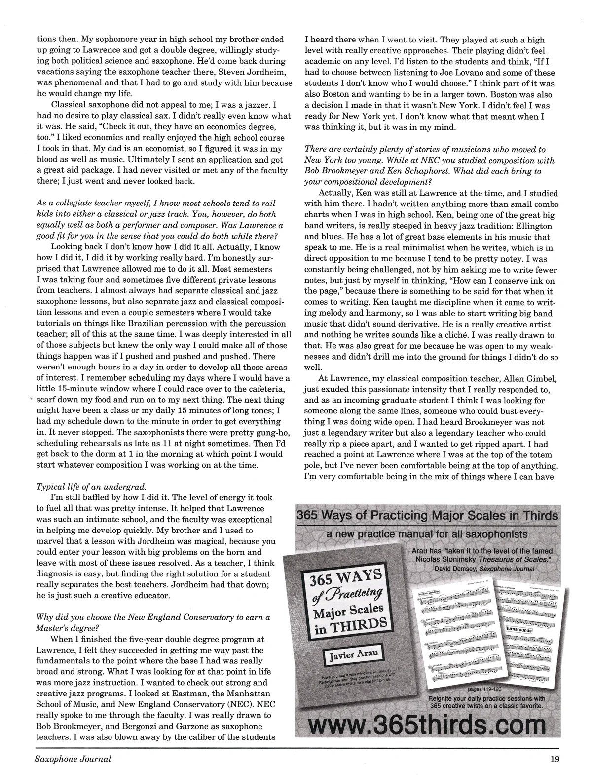 Javier came from a similar background as I did: never playing classical saxophone before college, coming from an almost strictly jazz background. He taught in exactly the type of way that I needed at this point in my musical career.